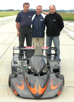 Michal Barták raced with the new 2-cylinder VM 250cc engine. In the course of the rainy race meeting the team battled with a lot of problems of the wiring system which were caused by too much water on the track. Because of this problem Michal did not finished the first final heat on Satturday. After having repaired the defects in the second final heat on Sunday Michal raced from position 6 after the start up to the second place during 4 laps. He drove the fastest lap times ! However, because of a broken cylinder he fell out 2 laps to go. Unfortunatelly, the mechanics did not have enough time for the right carbureter set up due to electricity problems which occured in the course of free practices. Nevertheless, our premiere race of the MS KART chassis with the new 2-cylinder VM 250cc engine came to great results. Especially because of the fact that Michal Bartak was faster then the winner Elkman who was the fastest pilot of the last race of the European Championship.